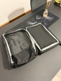Scomparto principale per trasportare accessori, documenti e articoli personali molto capiente, apribile a 180 gradi.