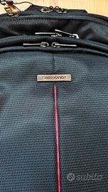 Zaino porta pc con tre comode tasche modello Guardit 2.0 della Samsonite di tessuto colore nero con inserti rossi.