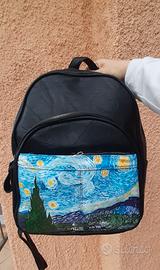 Zaino interamente dipinto a mano con prodotti professionali, ispirato a La notte stellata di Van Gogh 🤩, molto capiente con due tasche davanti ,una dietro e due tasche interne.
