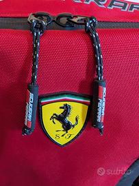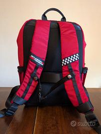 Zaino Scuderia Ferrari per la scuola e il tempo libero con design sportivo nei colori rosso e nero col logo del Cavallino Rampante.Ha uno scomparto principale con cerniera e una porzione interna, due tasche laterali aperte, schienale imbottito e bretelle imbottite regolabili. Nuovo mai usato.