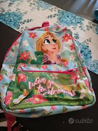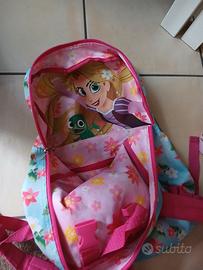 Zaino scuola bimba rapunzel azzurro e rosa double face ottime condizioni