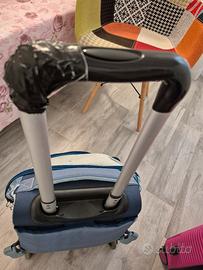 Zaino scuola usato 1 anno,non presenta ne buchi ne strappi, unico difetto visibile dalle foto e la maniglia del carrello che si è rotta e comunque sistemata con adesivo ma si può sistemare meglio o sostituirla proprio.
