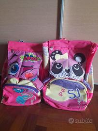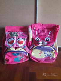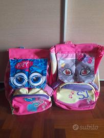 numero 2 zaini bellissimi. usati ma tenuti bene. possibilita' di cambiare disegno e fantasia della bimba. ogni giorno sembrera' d avere uno zaino diverso .