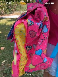 Ottimo stato; splacci imbottiti e regolabili; doppia apertura; colori vivaci non sbiaditi; patta frontale intercambiabile per uno zaino sempre diverso; no rotture; cerniere e chiusure perfettamente funzionanti