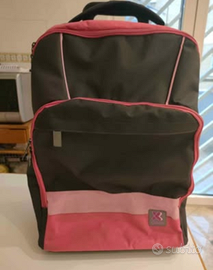 Zaino trolley Comix per ragazza, colore rosa e antracite, con manico e spallacci estraibili, due ampi vani per i libri e due grandi tasche anteriori, ideale per la scuola media.