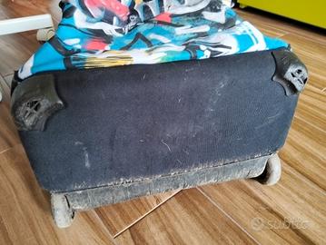 Vendo zaino per scuola usato un solo anno scolastico ancora in buone condizioni. Il manico non scende completamente e ci sono alcuni segni di usura come da foto allegate. Gli interni invece sono perfetti.
