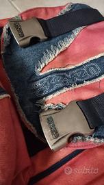 Colori rosa e jeans nella parte anteriore, nella parte degli spallacci e retrostante blu.