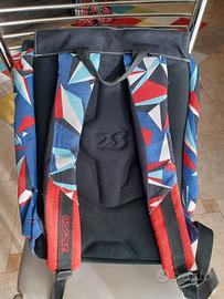 Bellissimo zaino Seven con colori vivaci e divertenti. Munito di tante tasche, 3 frontali e due laterali che permettono allo zaino di "allargarsi" oltre a un vano separato per gli oggetti lunghi (tipo per un ombrello). Usato ma ancora in ottime condizioni.