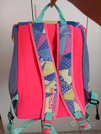 Vendo zaino della Seven originale, caratterizzato da un design vivace con pattern geometrici nei toni del viola, fucsia e verde acqua. Lo zaino è molto capiente e robusto, ideale per le elementari o le medie.