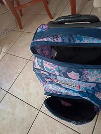 Vendesi zaino trolley seven in ottime condizioni. Robusto. Maniglia per trainarlo, rotelle per agevolare il movimento, bretelle da usare o in alternativa da riporre nell'apposita tasca. 3 tasche frontali. Internamente è presente una cerniera la fodera. Probabilmente per riporre le scarpe se necessario. Personalmente mai usata.