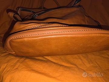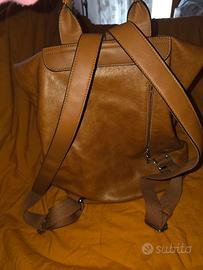 Comodissimo zaino da donna in similpelle marrone. Regolabile.. Super capiente con diverse tasche all'interno più una davanti e una sul retro per cellulare.. Tutte con zip... Nuovissimo.