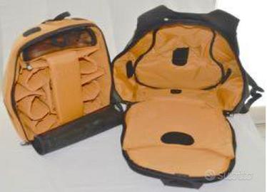 Zaino a spalla in tessuto antistrappo con guscio interno estraibile predisposto per contenere x2 corpi photo e vari obbiettivi + PC 15" e spazio. NUOVO mai usato di colore Verde oliva e Arancio by Crumpler modello unico