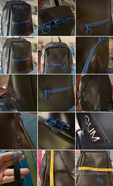 Gum Design By Gianni Chiarini Zaino Sporting Large in Pvc nero, tasca esterna con zip bluette, spallacci regolabili, chiusura con zip bluette.