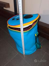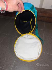 Zainetto termico, edizione limitata della San montana con radio inclusa.lo zaino non è mai stato utilizzato me lo sono ritrovato nella vecchia cameretta.presenta (come si vede in foto) un piccolo strascico di adesivo probabilmente appartenente al rigonfiato della scatola ma facilmente rimovibile.zainetto nuovo non presenta difetti Facilmente lavabile e sfoderabili anche della stessa radio.