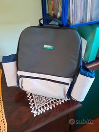 zaino colore verde in tessuto molto resistente con scomparti per bibite panini e altro come si vede in foto ,mai usato ,lo stato è perfetto ,spazio laterale per 2 bottiglie ,misura medio grande.consegna a mano