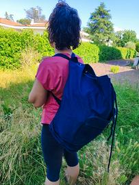 zaino a "saccco" che con il sistema dei ganci divenne una tracolla pieghevole e richiudibile!