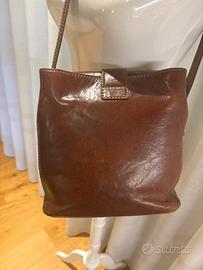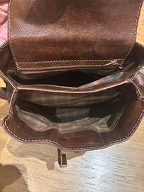 Zainetto/tracolla “The Bridge” in cuoio. Leggeri strisci sulla chiusura frontale. 20x20 cm. 2 larghe tasche interne.