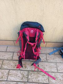 Zaino trekking donna Quechua Forclaz 30 air+. Colore grigio rosa. Copri zaino incorporato. Schienale con sistema AIR . Numerose tasche.