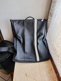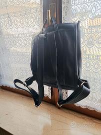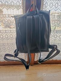Zaino in pelle nero con riga bianca 38 x 30 cm