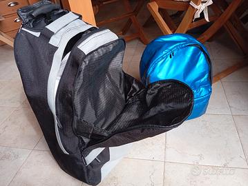 Zaino trolley united color Benetton, ottime condizioni, cm H60xL35, maniglia trolley a scomparsa, bretelle zaino a scomparsa, 2 scomparti grandi e 1 tasca esterna in basso tutti chiusi da cerniera. Zaino frigo blu, cm H40xL30.