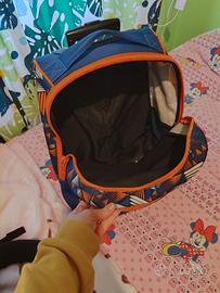 Vendo zaino trolley Carrera blu e arancione misure larghezza 36 cm x profondità 20 cm x altezza 46 cm. Lo zaino ha tre tasche più una posteriore che serve a nascondere le spalline se non si vogliono lasciare a vista.