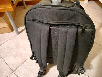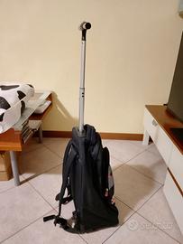 zaino trolley Freddy nero e rosa con manico richiudibile e spallacci che si possono staccare e inserire nella tasca posteriore sulla schiena.