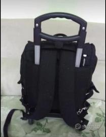 Zaino trolley nero con brillantini , molto spazioso multitasca , trolley estraibile .