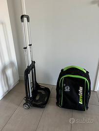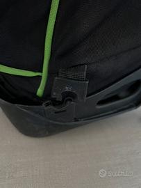 Vendo zaino trolley Invicta modello 206002042-899 Daypack in poliestere di colore nero con scritte e dettagli verde fluo come da foto. Acquistato nel 2020 al prezzo di 120€ è servito a mio figlio per i 3 anni delle scuole medie e poi riposto in cantina. È in buono stato, tutte le cerniere sono perfettamente funzionanti, normale usura delle due ruote con un gancio di fissaggio rotto come da foto.