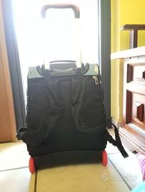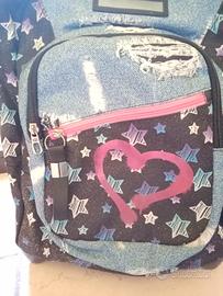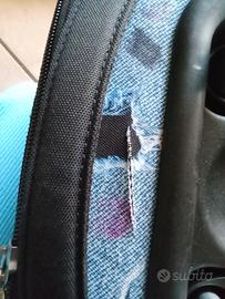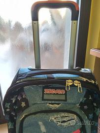 Vendo bellissimo zaino trolley Seven, in tessuto effetto denim. Due ruote e due puntali, che garantiscono la stabilità anche a pieno carico. Spallacci regolabili. Due tasche anteriori, con ulteriore mini scompartimento interno ed una capiente tasca posteriore. Ideale per le scuole medie o weekend fuori porta. Presente un piccolo taglio superficiale (la superficie sottostante è integra), come da foto.