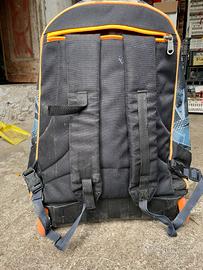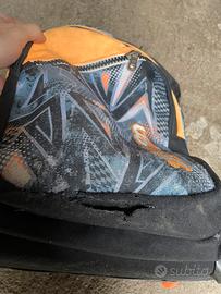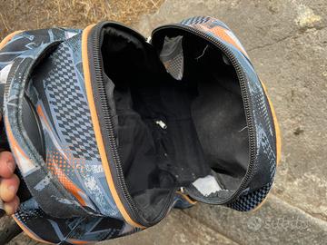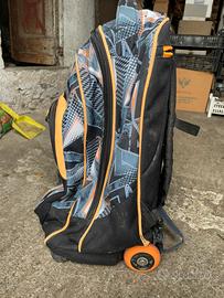 Zaino seven con le route molto capiente. Ideale per trasportare l’esagerata quantita di materiale utilizzato alle scuole medie. Mi e stato molto utile. Complessivamente lo zaino è in buono stato tranne un buco sulla tasca piú piccola. Si puo non utilizzare quel taschino, oppure si puo cucire. Le bretelle originali si sono rotte quindi sono state sostituite. Queste nuove sono tranquillamente in grado di portare pesi. Le bretelle si possono anchs staccare e inserire nell apposita tasca quando si usa lo zaino in modalita trolley.