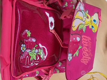 Zaino per la scuola con il simpatico Tweety e fragole.