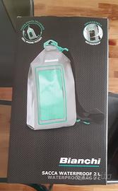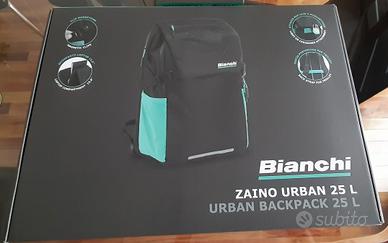 Lo zaino e la sacca sono nuovi mai usati: - Zaino Urban 25 L Bianchi dotato di scomparto imbottito per laptop fino a 15,6", tasche laterali e comparto principale con tasche interne. Spallacci regolabili e schienale ergonomico. Realizzato con poliestere ripstop, materiale leggero e resistente alla pioggia. Tutti i componenti in poliestere sono realizzati con plastica riciclata. Capacità 25 L. Dimensioni: 46,5x34x16 cm. - Sacca Waterproof 2 L Bianchi monospalla con finestra per smartphone e spallaccio regolabile. Grazie alla sua costruzione ermetica gli oggetti all'interno sono al riparo dall'acqua che tu sia al mare, in bici sotto un temporale o in barca. Grado di impermeabilità: IPx8, materiale in PVC. Tutti i componenti in poliestere sono realizzati con plastica riciclata. Dimensioni 31x16 cm.