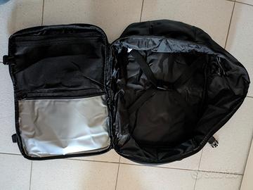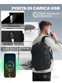 Zaino da cabina KLO con porta USB per power bank esterno, ideale per viaggi low-cost. Misure 45x36x20 cm, approvato per EasyJet, Lufthansa, Air France, Jet2, British Airways, Turkish Airlines . Caratteristiche Principali Porta di ricarica USB esterna: collega il tuo power bank (non incluso) e carica smartphone/tablet in movimento senza cavi esterni . Scomparti multipli, spalline regolabili, maniglia, design nero robusto con logo KLO; entra nei vani superiori aerei . Capacità litri adatti a essentials di viaggio, PC fino 15.6" . Condizioni e Uso Come nuovo, porta USB funzionante; power bank non presente �. Dimensioni precise: 45x36x20 cm (17.7x14.1x7.8 pollici) per compagnie low-cost �. Vendesi per inutilizzo, prezzo trattabile.