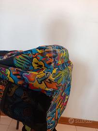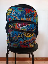 Vendo coloratissimo zaino in buone condizioni... 2 scomparti, 1 tascone, 1 tasca con cerniera, 1 retina per borraccia.