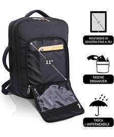 ORGANIZZATO: Questo zaino è l'ideale per chi viaggia leggero. Oltre all'ampio scomparto principale, è dotato di una tasca frontale più piccola, perfetta per gli oggetti più piccoli a cui è necessario un rapido accesso durante il volo; come documenti di viaggio, un libro, cuffie, snack o dispositivi elettronici e dispone anche di una tasca trasparente per articoli da toeletta. Dispone inoltre di una tasca porta documenti in rete con zip all'interno dello zaino.