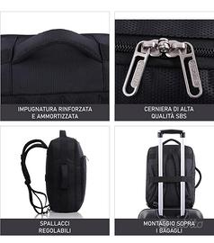 INDOSSARE SULLA SCHIENA O MONTARE SU BAGAGLI PIÙ GRANDI: il nostro zaino è altamente adattabile. Quando si indossa la borsa sulla schiena, include cinghie regolabili in lunghezza per comodità. Oppure, se viaggi con una valigia da cabina più grande o un bagaglio da stiva, è dotata di una cinghia di montaggio dedicata sul retro, che ti consente di montare la borsa sulla maniglia estensibile del trolley.