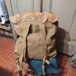 Vendo zaino militare vitage originale in juta.Il materiale è integro, senza strappi o riparazioni . Mai utilizzato.Le cinghie sono ancora solide e funzionali. Spallacci regolabili e chiusura a fibbia. Ideale per amanti del surplus militare o per arredamento vetrine.