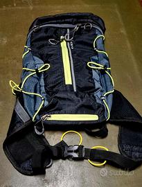 Zaino West Biking impermeabile 10 lt.,tre tasche + tasca in vita porta telefono, gancio sospensione casco, tasca sul fondo per ripiegare lo zaino, rivestimento traspirante sul retro e sulle spalle, inserti riflettenti