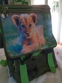 Zaino con immagine del cucciolo di leone sulla patta principale Estensibile IDROPELLENTE Taschina laterale porta borraccia Spalline e schienale imbottite Perfette condizioni come nuovo