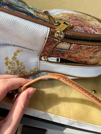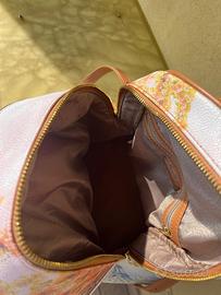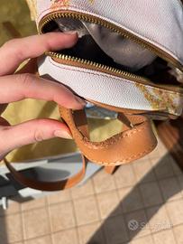 Condizioni:Lo zainetto è in buone condizioni generali ed è stato usato poco.Segnalo però che la maniglia superiore presenta una piccola imperfezione: manca un piccolo pezzo di rivestimento in pelle ed è quindi leggermente rovinata (visibile nelle foto).
