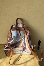 Bellissimo zainetto con stampa romantica ispirata a Parigi, con paesaggio urbano e Torre Eiffel sullo sfondo.
