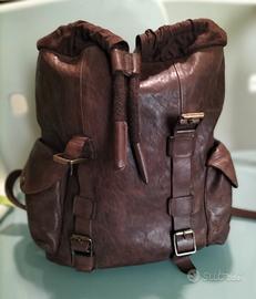 Zaino Zara in cuoio, stile vintage, nuovo, tre tasche interne di cui una con cerniera, tasche laterali con chiusura, cinghie regolabili, maniglia per trasporto. Molto bello.