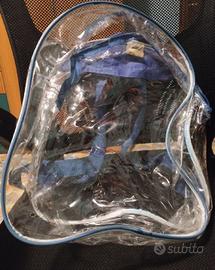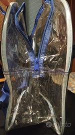 Zaino spalla borsa zip see-through trasparente plastica con spalline blu e bianco, capiente. Per scuola, bambini, adolescenti, gite, viaggi, pranzo al sacco. Mai usato come nuovo