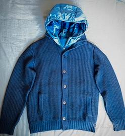 Zanone, cardigan blu in lana merinos, con all’interno giubbino in piuma d’oca smanicato, misura 50 Itliana, M/L internazionale, usato pochissimo, come nuovo, bendo causa inutilizzo