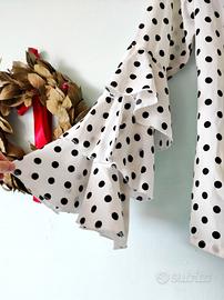 preppy old money casual chic boho pois polka dot punti puntini cerchi bell sleeve maniche a campana svasate ampie
