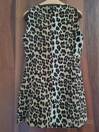 Abito corto taglia M (EUR) con stampa leopardata. Chiusura con cerniera posteriore e gancetto.