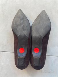 Ballerine marroni scamosciate con fiocco, forma a punta. Numero 37. Indossate un paio di volte. Zara.