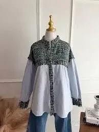 Zara Basic Tweed Shoulder Striped Button Up Shirt