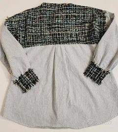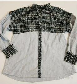Zara Basic Tweed Shoulder Striped Button Up Shirt - XS / IT 38 / EU 34