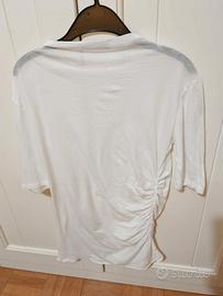 zara bluse bianca con maniche3/4, e arricciata sul fianco tg S, misure in cm nelle foto, usata ma in buone condizioni ha una piccola macchia vedi foto euro 6.90